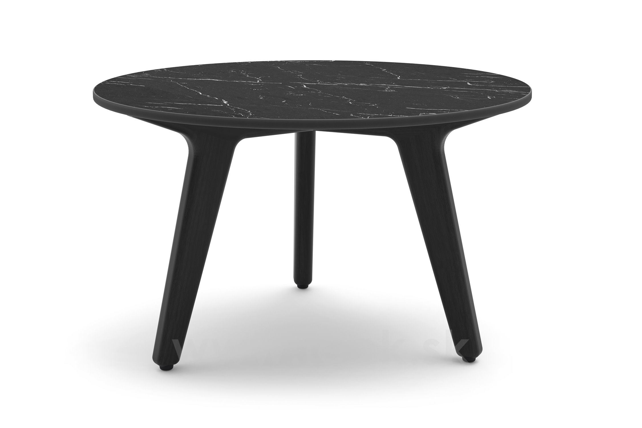 Nízký stolek Torsa, Manutti, kulatý prům. 60x35 cm, rám teak, deska keramika 12 mm, dekor marble black