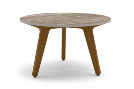 Nízký stolek Torsa, Manutti, kulatý prům. 60x35 cm, rám teak, deska keramika 12 mm, dekor fossil