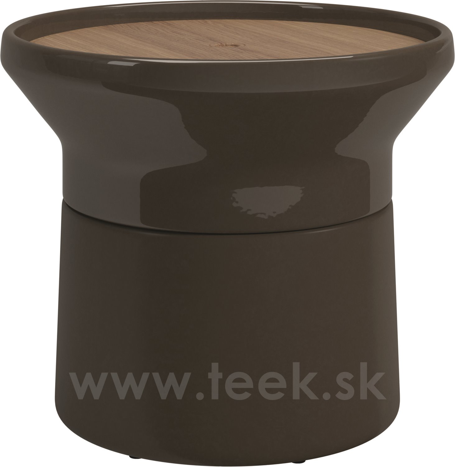 Keramický odkládací stolek nízký Coso, Gloster, kulatý 48x40,5 cm, glazovaná keramika, barva Earth, deska teak
