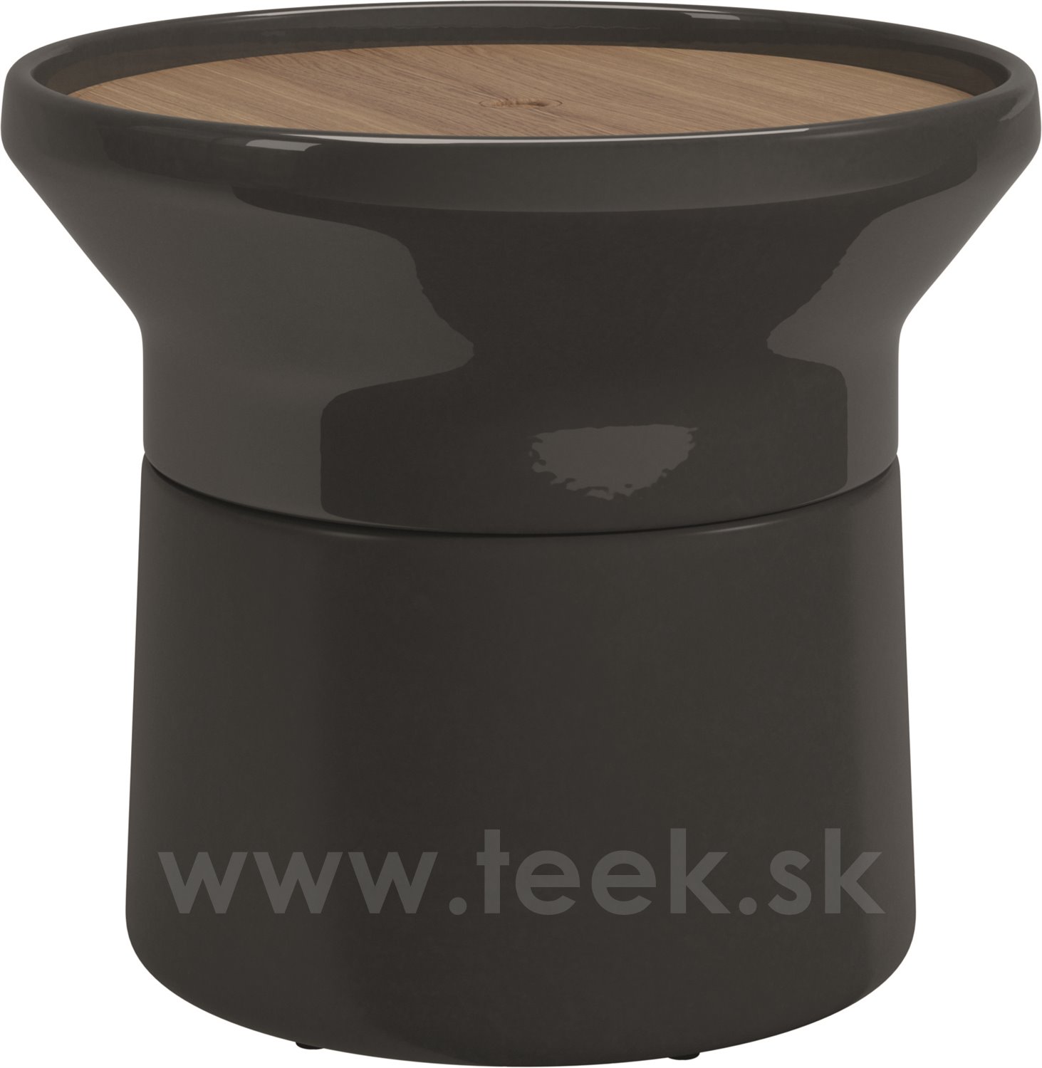 Keramický odkládací stolek nízký Coso, Gloster, kulatý 48x40,5 cm, glazovaná keramika, barva Iron, deska teak