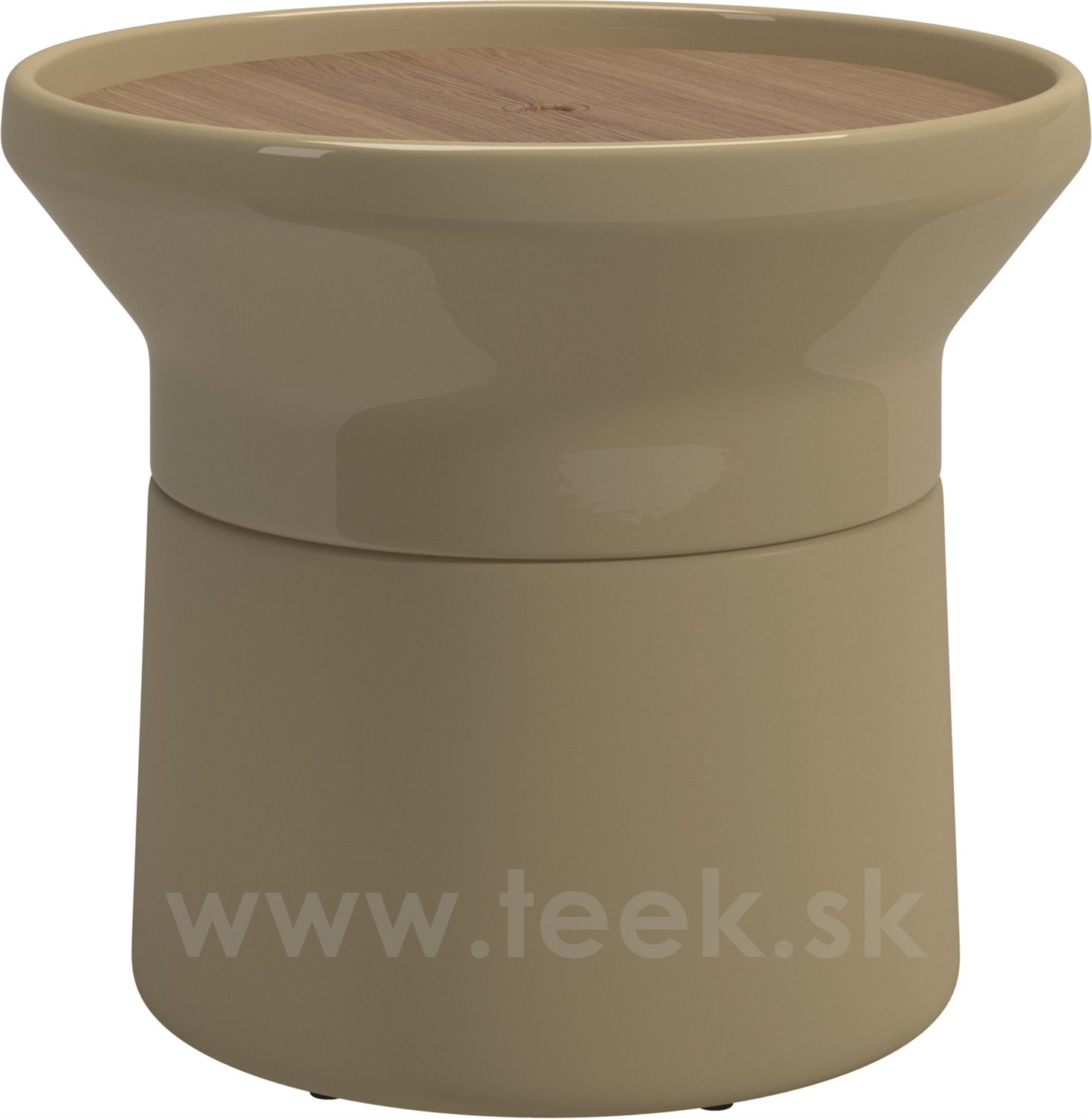 Keramický odkládací stolek nízký Coso, Gloster, kulatý 48x40,5 cm, glazovaná keramika, barva Sand, deska teak