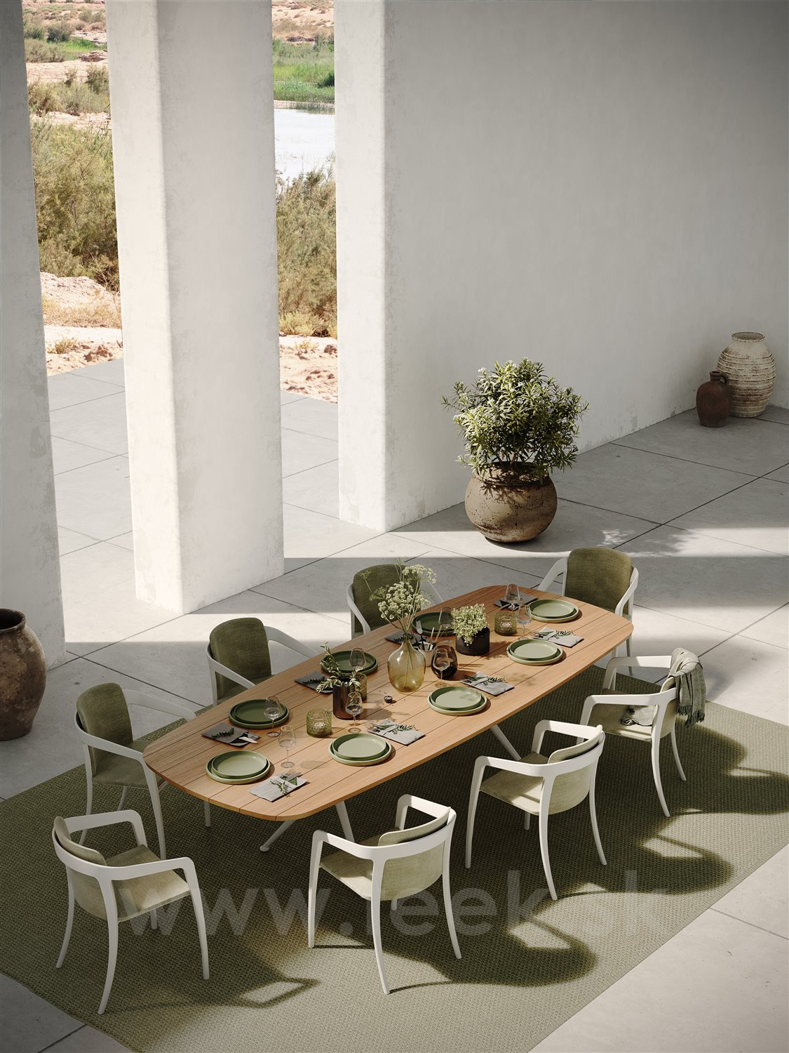 Jídelní stůl Exes, Royal Botania, obdélníkový 300x120 cm, hliník, keramika/teak