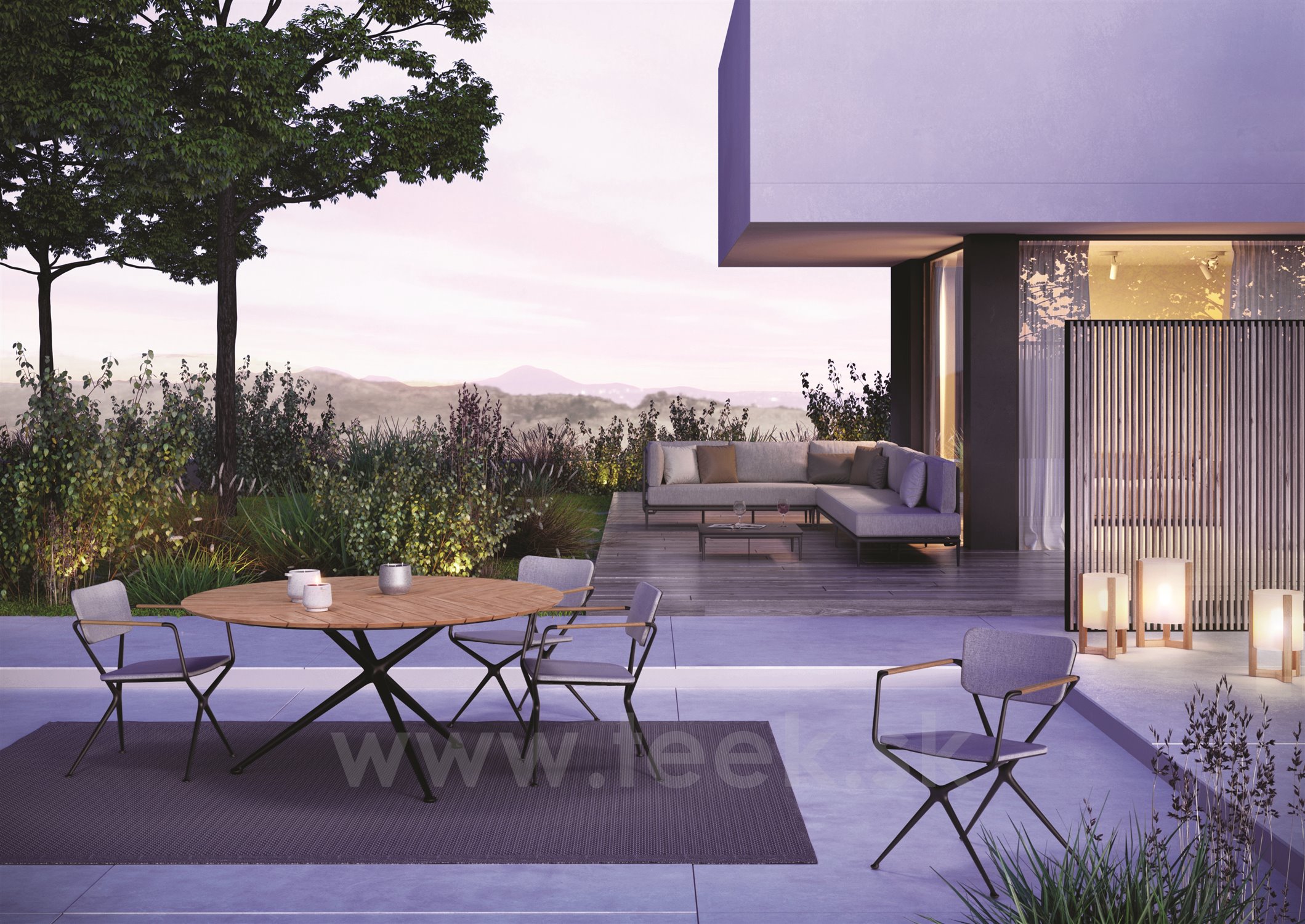 Jídelní stůl Exes, Royal Botania, kulatý 160 cm, hliník, keramika/teak