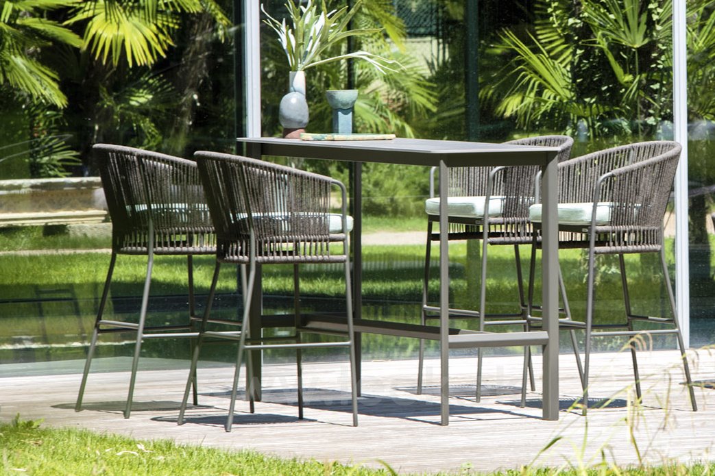 Barové křeslo vyšší Tibidabo, Varaschin, 56x57x108 cm, rám hliník, výplet lanko, sedák venkovní látka kat. D, barevné provedení dle vzorníku