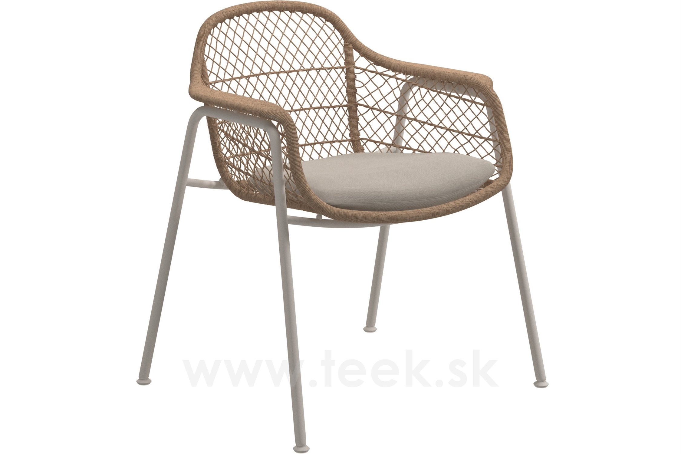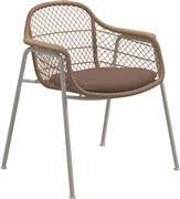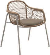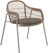 Jedálenská stolička Fresco od spoločnosti Gloster. Záhradné kreslo má hliníkový rám obalený vrúbkovaným umelým ratanom.