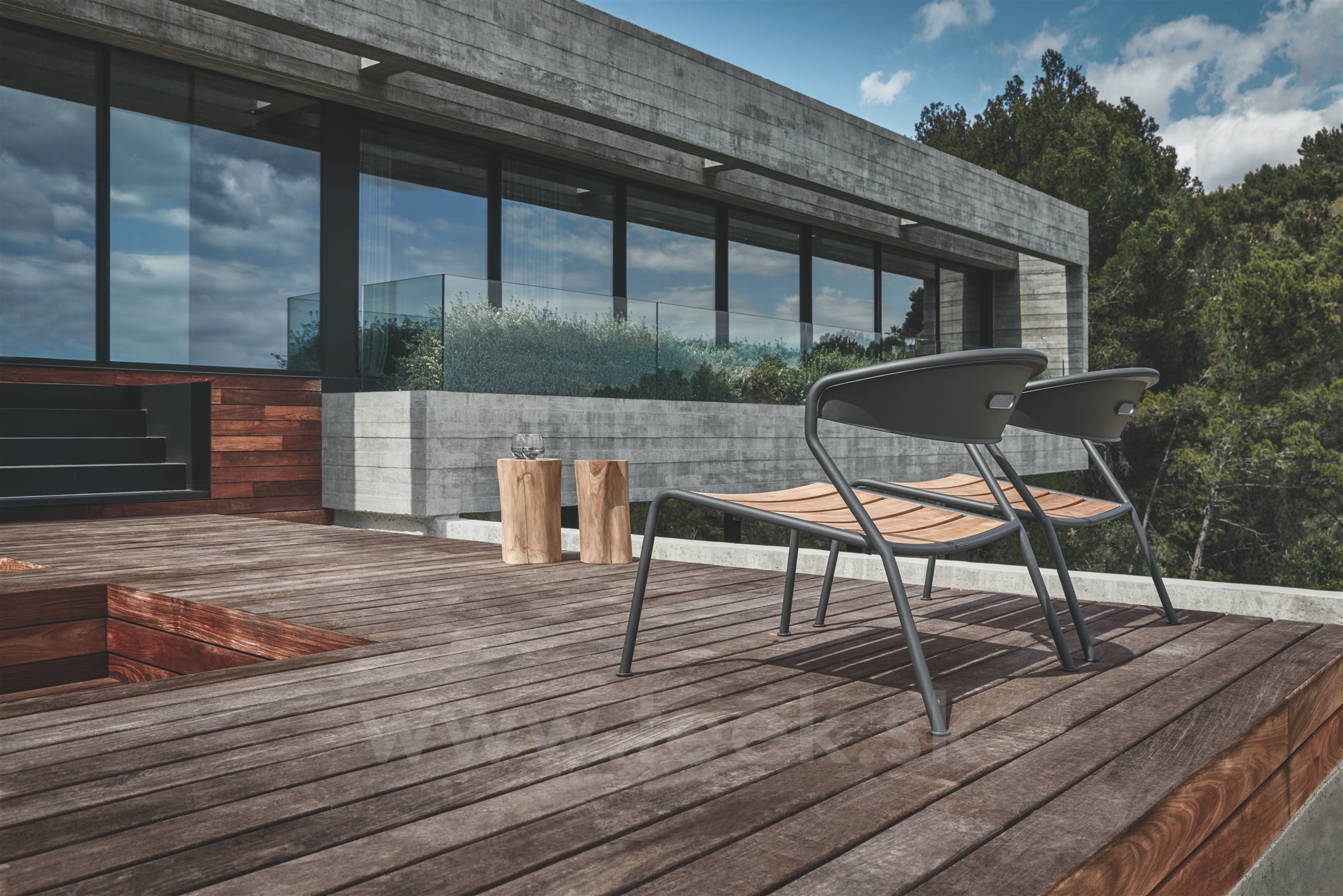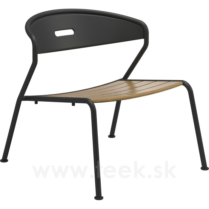 Aluminum low armchair Curve by Gloster. Chair construction in aluminium in dark grey lacquer (meteor), seat surface in teak slats.