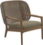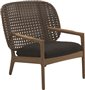 Nízké křeslo s nižší zádovou opěrkou Kay, Gloster, 85,5x84,5x83,5 cm, rám teak, výplet umělý ratan barva Copper, sedák venkovní látka kat. B barva dle vzorníku