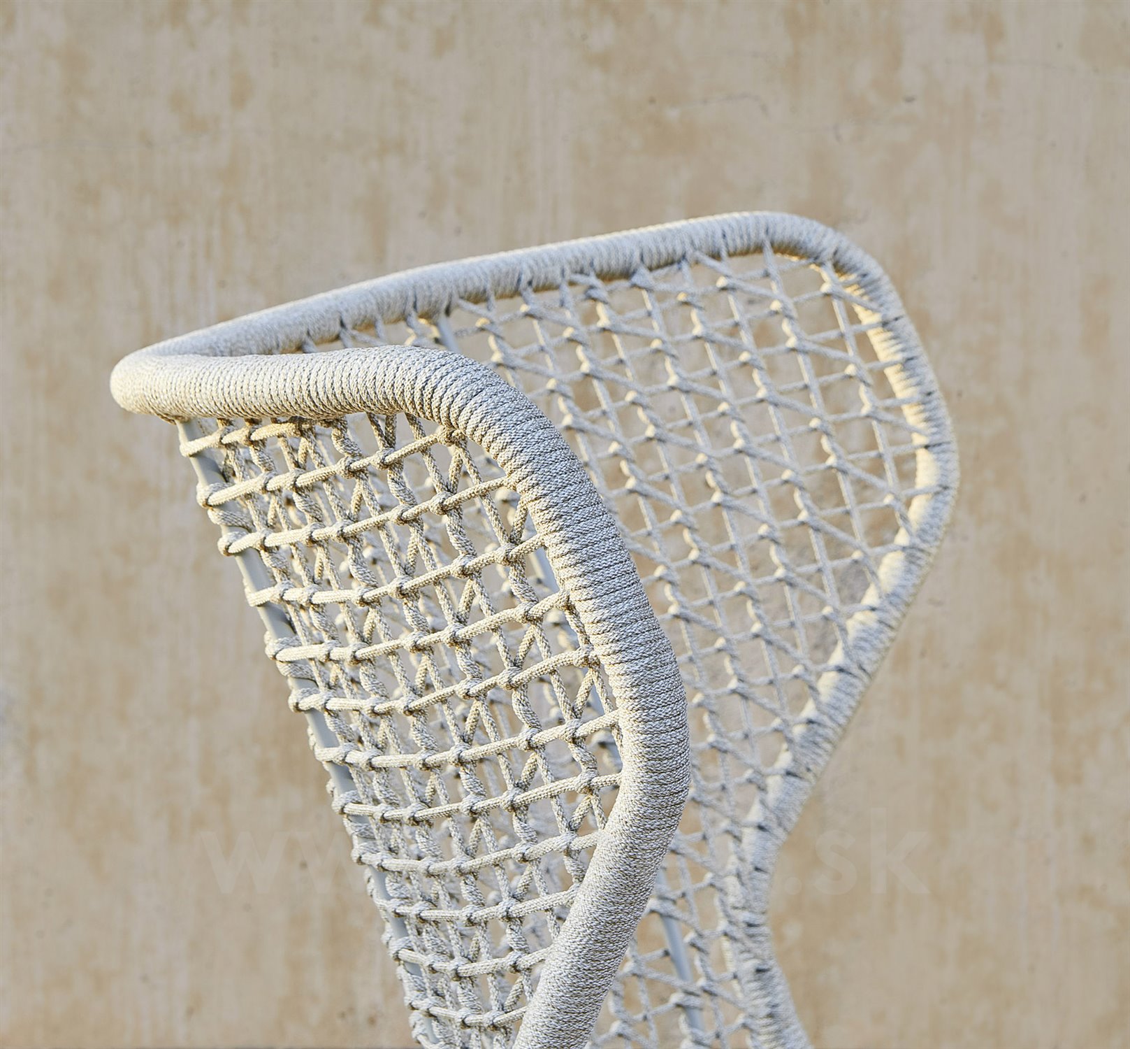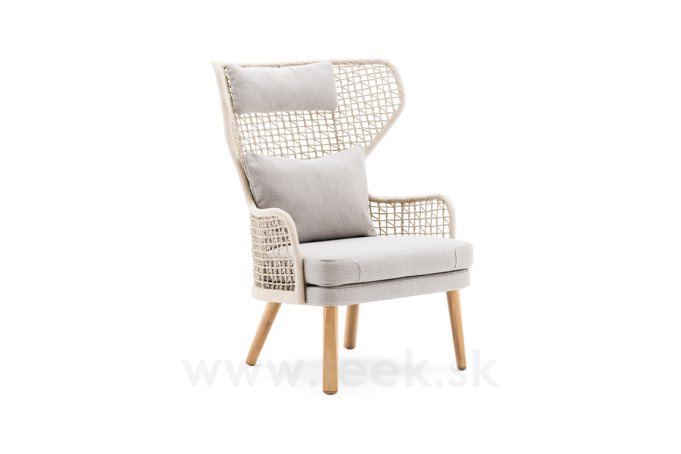 Nízké křeslo s vysokou zádovou opěrkou Emma, Varaschin, 83x79x108 cm, nohy iroko, výplet lanko, sedák, 1 opěrný polštář a 1 podhlavník venkovní látka kat. B, barvy dle vzorníku