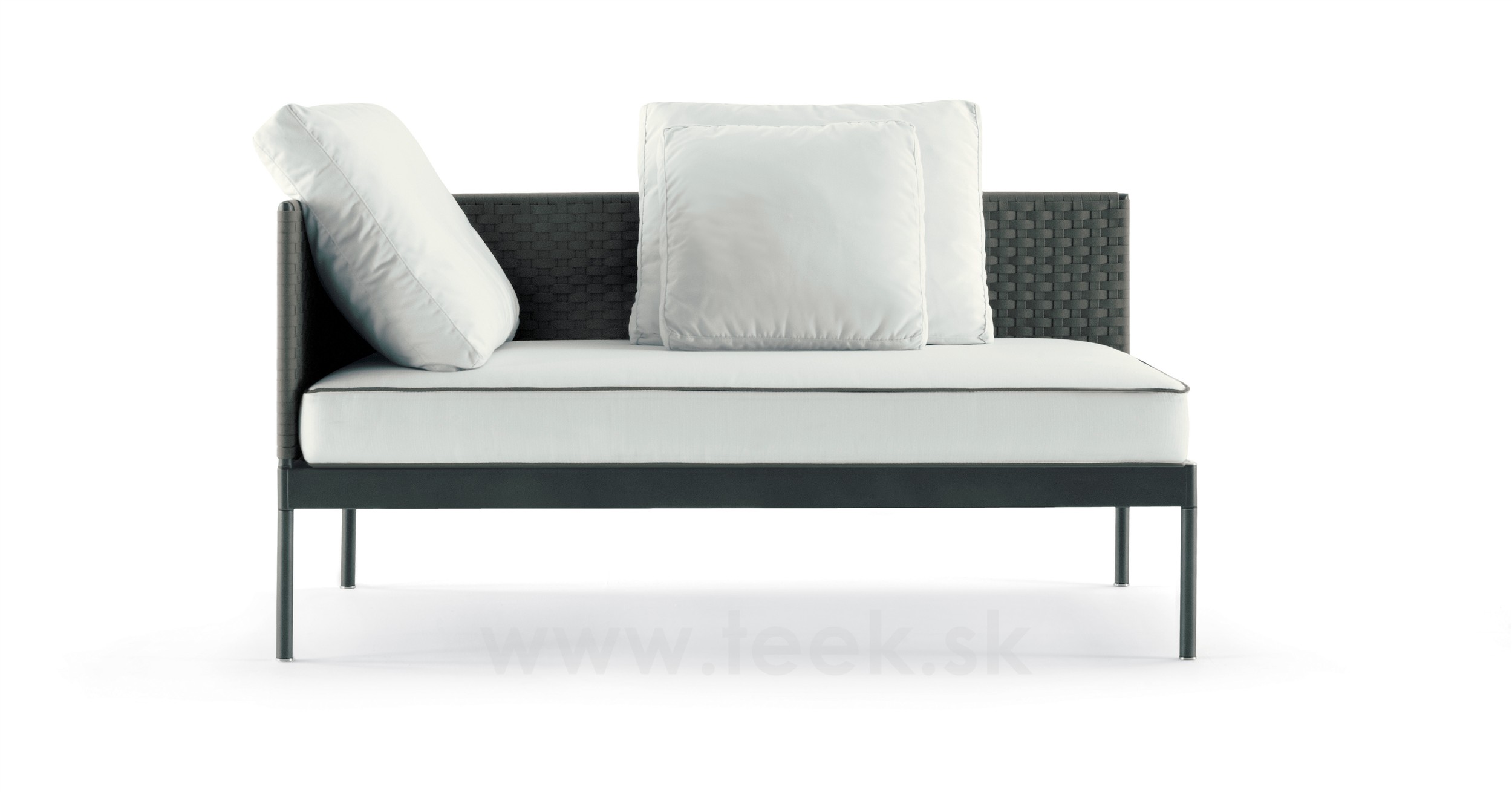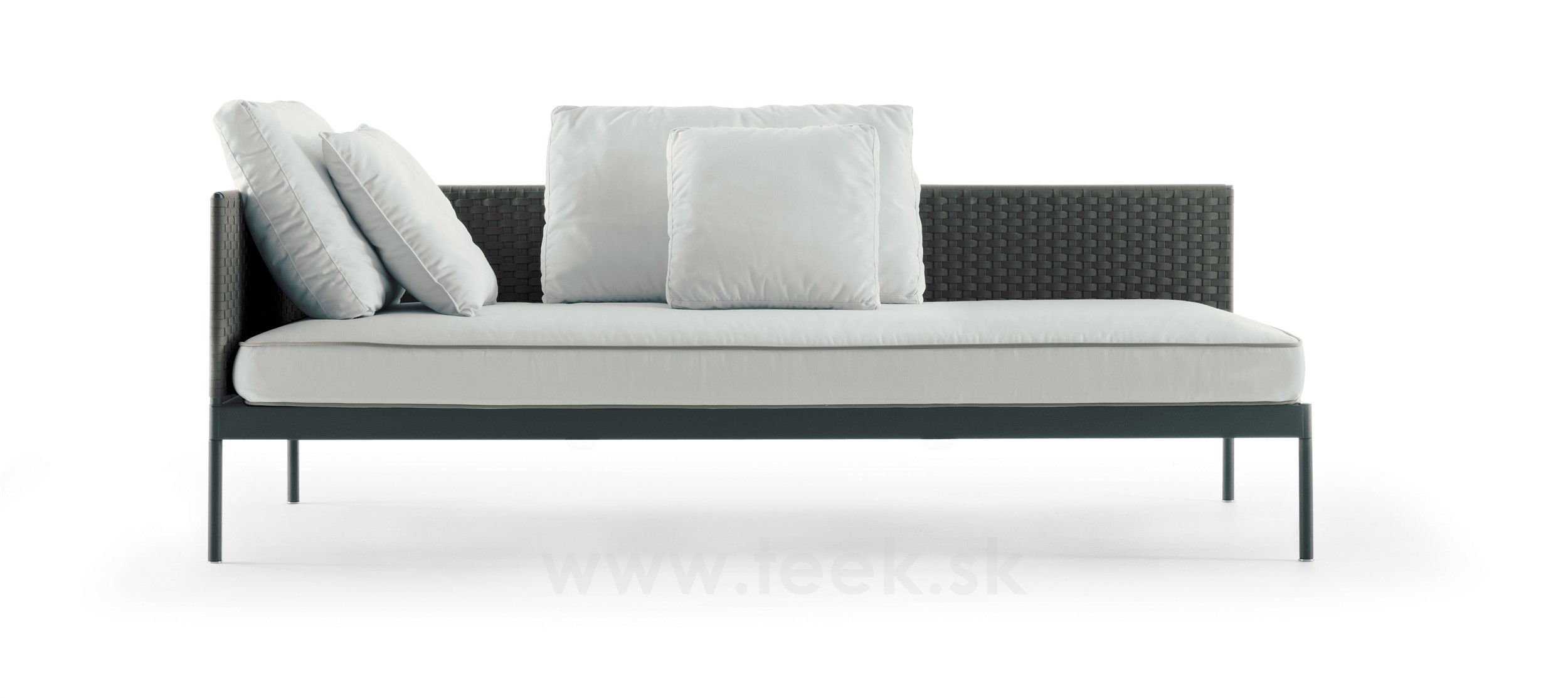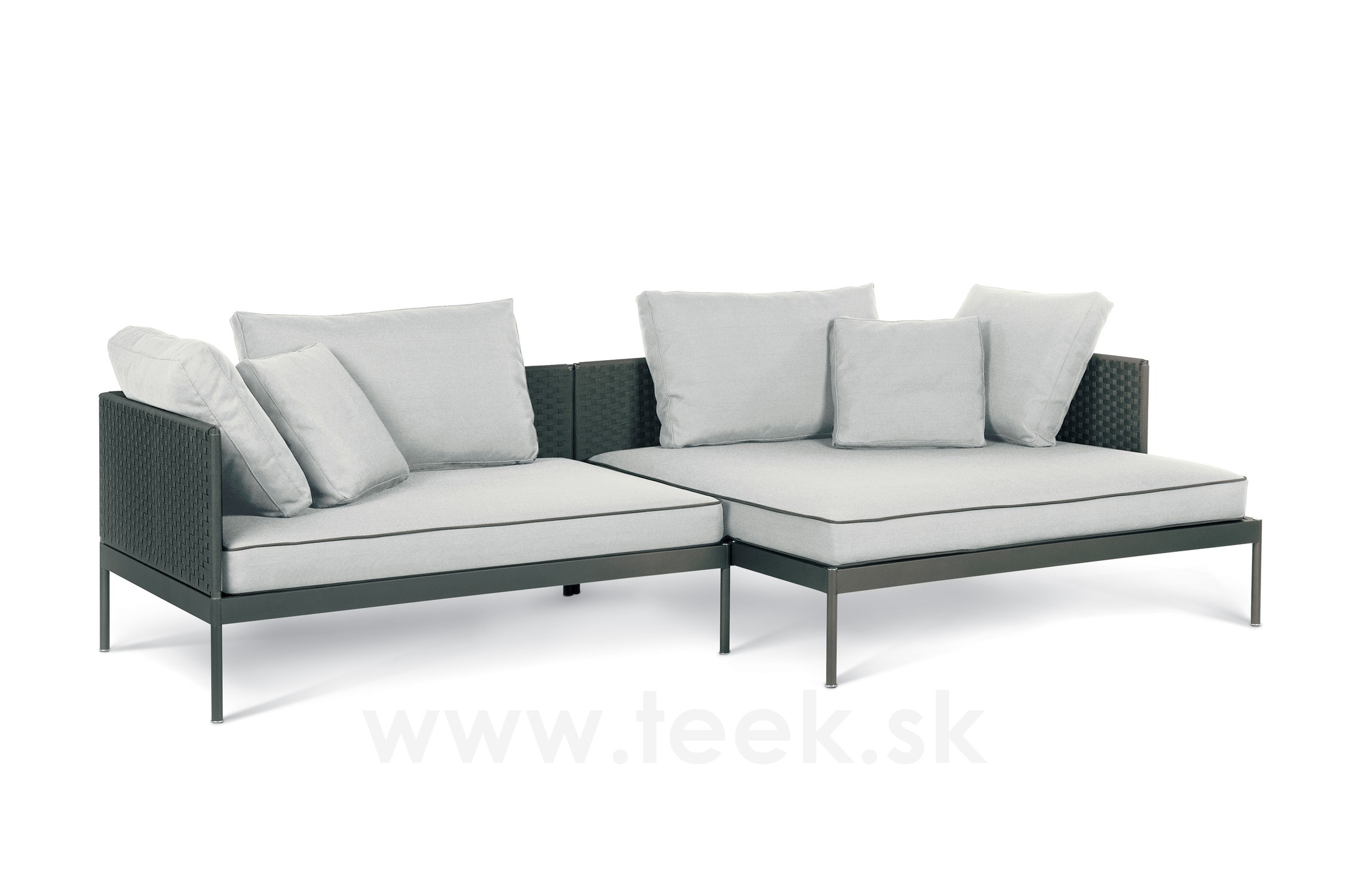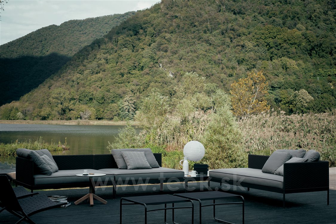 Modulárna sedacia súprava Roda Basket sa skladá z: podstavca + sedadla k podstavcu + operadla + zadných vankúšov - všetko sa objednáva samostatne.