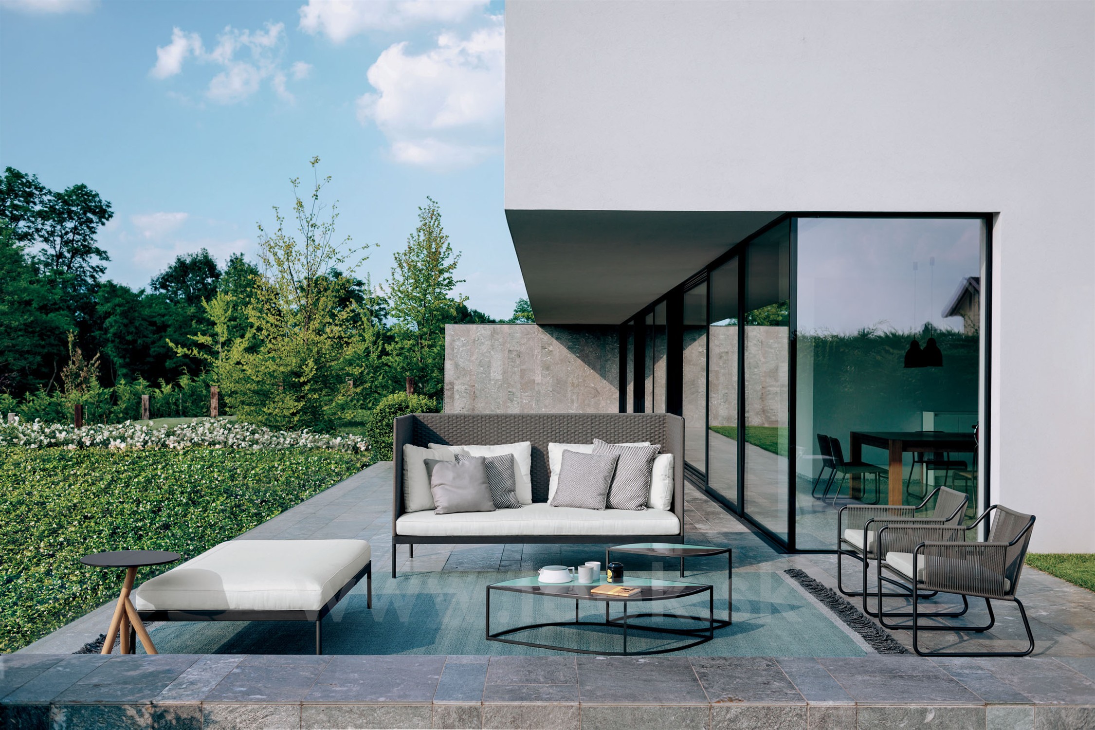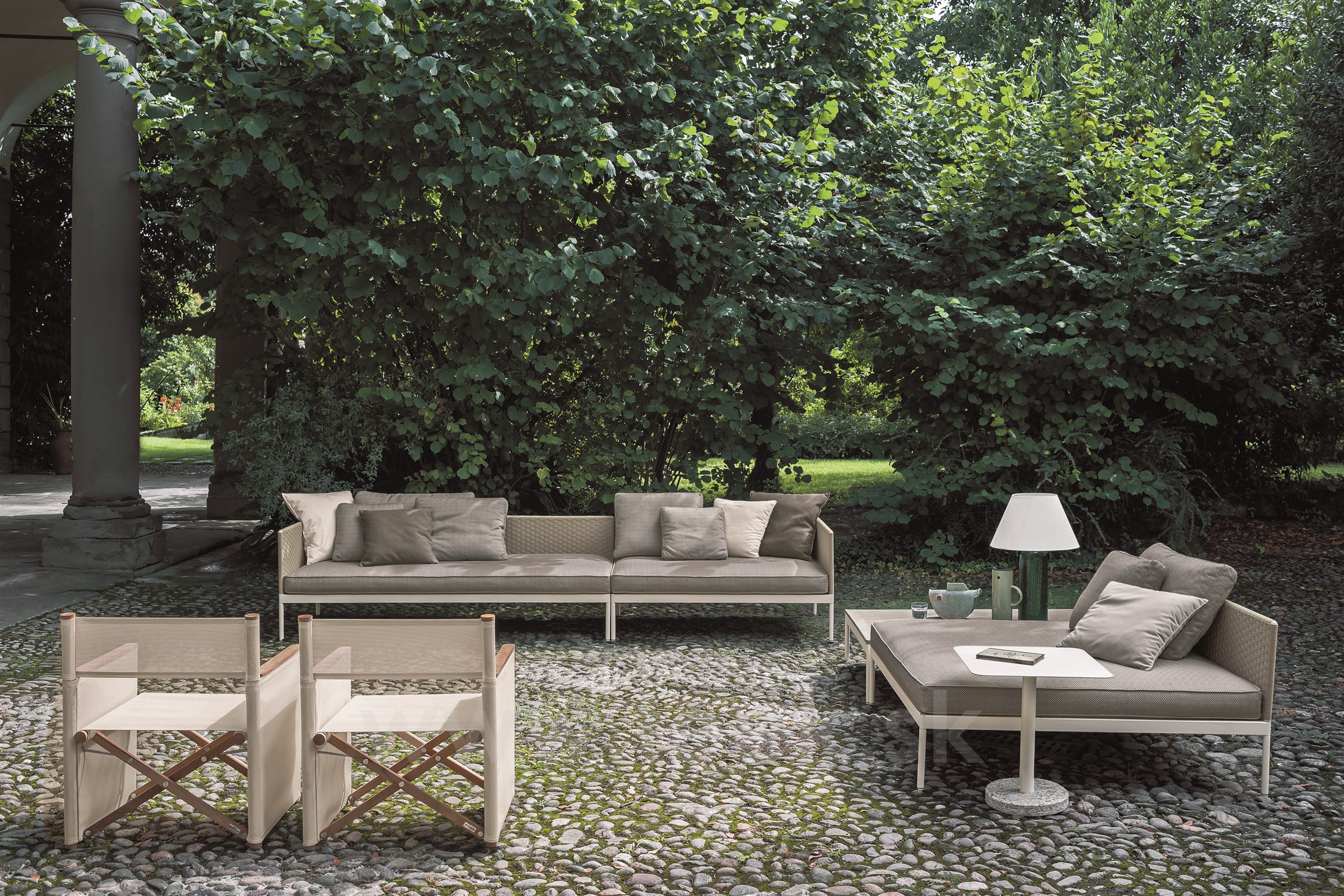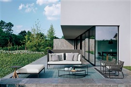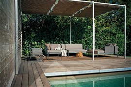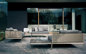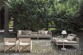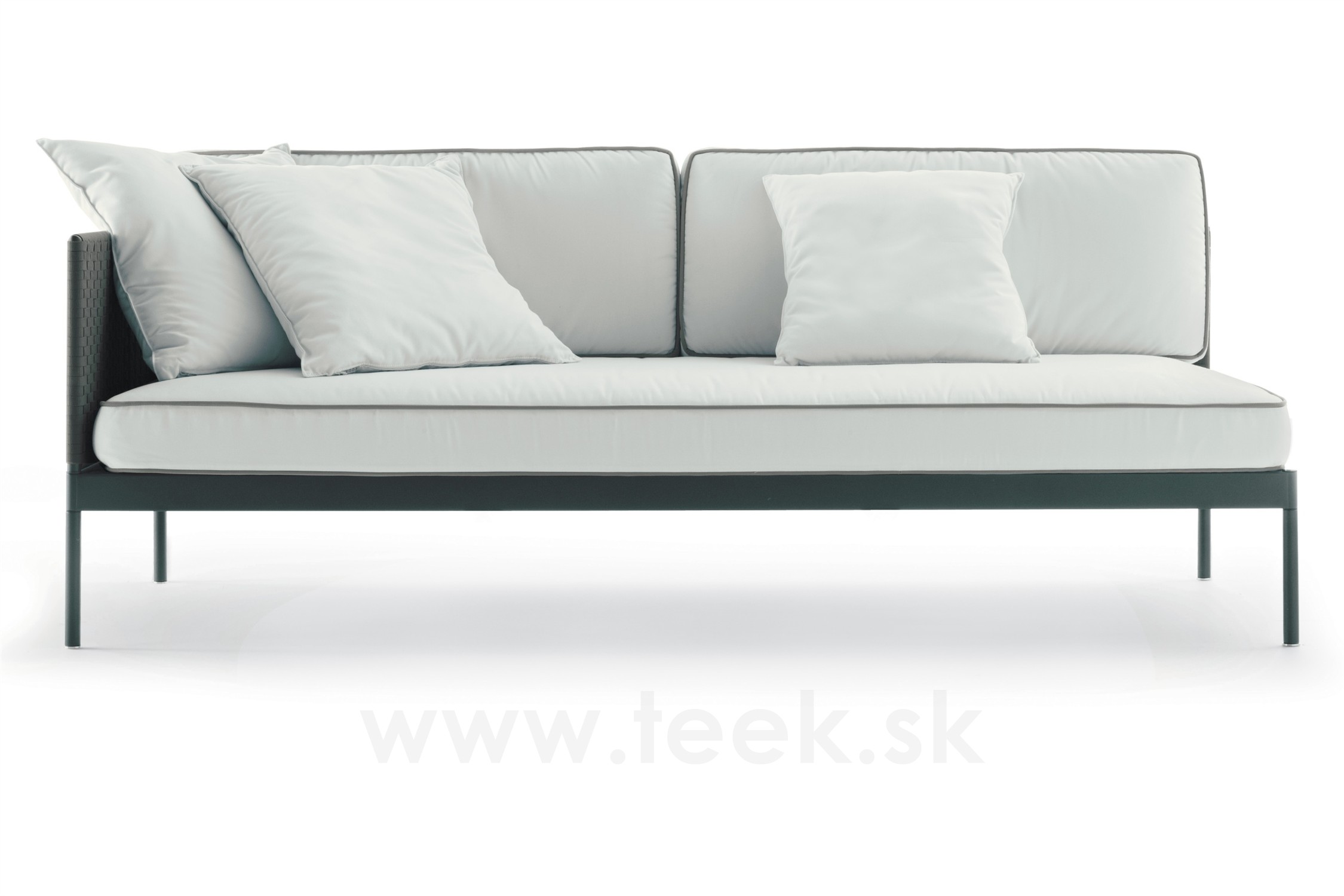 Modulárna sedacia súprava Roda Basket sa skladá z: podstavca + sedadla k podstavcu + operadla + zadných vankúšov - všetko sa objednáva samostatne.