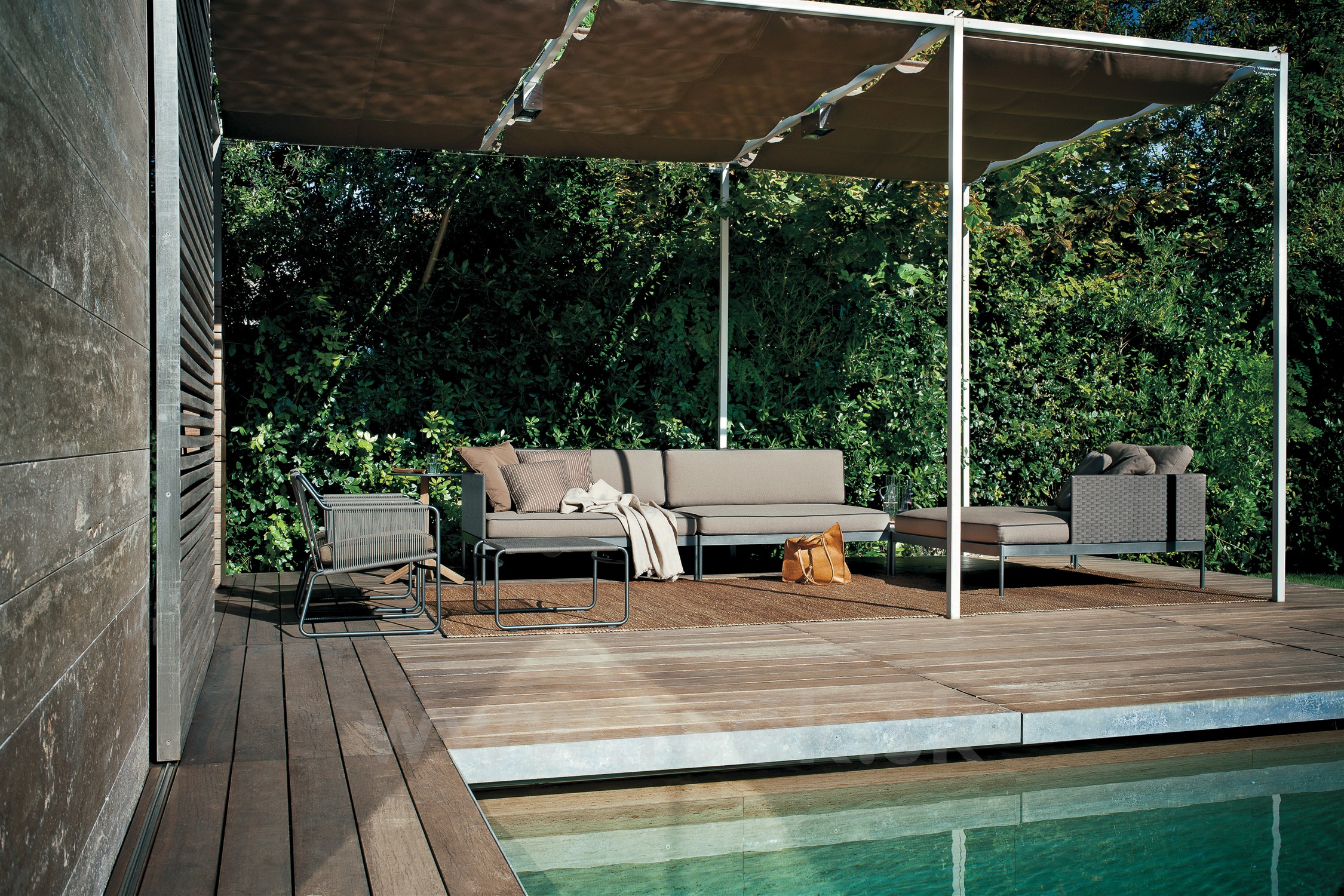 • - vonkajšie vankúše na sedadlo a chrbtovú opierku - jadro z rýchloschnúcej peny, okolo neho sieťovina a vonkajšia tkanina potiahnutá teflónom, vďaka čomu sú vankúše na sedadlo/chrbtovú opierku vodotesné, technicky sú vankúše na sedadlo/chrbtovú opierku vyrobené tak, aby boli vzdušné